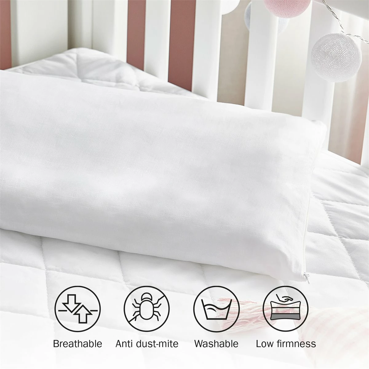 Nuestra almohada infantil, recomendada para los mayores de dos años, ha sido diseñada pensando en los peques y en sus necesidades de descanso y desarrollo. Su tratamiento especial aleja a los ácaros. Es suave para que pueda abrazarla, de poca altura para proteger su cuello y ha sido confeccionada con materiales hipoalergénicos, para evitar síntomas de alergias. Además cuenta con una funda exterior 100% algodón, muy práctica para que puedas lavar solo la funda siempre que sea necesario, o la almohada completa para una limpieza a profundidad.