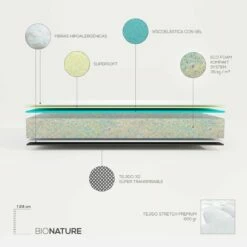 SU VISCOELASTICA DE ALTA DENSIDAD proporciona una adaptabilidad excelente que equilibrara y acomoda cualquier postura al dormir. Confort progresivo, acompañado por una firmeza óptima. Su soporte de muelles ensacados transmite el peso a cada muelle individual, ofreciendo una firmeza personalizada para cada zona corporal. Transpiración máxima. Mantendrá la temperatura ideal durante el descanso, gracias a las nanofibras de grafeno incorporadas en el viscoelástico.