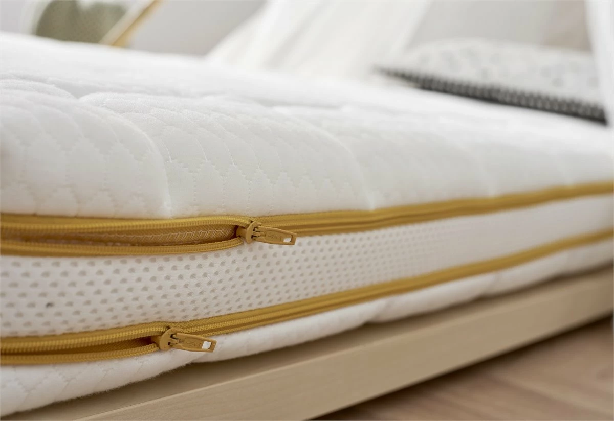 Varios son los aspectos que nos preocupan a la hora de elegir un colchón de cuna, con el colchón de cuna Breeze podremos solucionarlos sean cuales nuestras necesidades. Disponible en tres medidas diferentes de cuna, quedará siempre ajustado. Su composición Strech Arcade bolong, mas la capa extra de fibras naturales garantizarán su firmeza, y los tratamientos hipoalergénicos así como de reducción del riesgo de plagiocefalia o asfixia proporcionarán un descanso 100% seguro.La facilidad para desenfundarlo y lavarlo hará que su resistencia y durabilidad estén aseguradas durante años.★ Reducción de riesgo de Plagiocefalia | Asfixia★Núcleo con sistema Rollingback antivuelco★Certificado Oeko Tex | Libre sustancias perjudiciales para salud ★Colchón de cuna con tratamientos | Antibacterianos e Hipoalergénicos★ Altura de 12 cm + 2 cm de fibras naturales Todotherm★Sin muelles para un mayor silencio★Cremallera de seguridad para quitar la funda★ Tapa superior con 150gr extra de fibra★ Tejido 3D que está dotado de perforaciones hexagonales, por lo que es transpirable totalmenteTratamientos y certificados de nuestros colchones: ★Función higiénica Sanitized® (especialista en el tratamiento antimicrobiano de textiles que protege a los colchones contra la formación de moho y algas, reduce la presencia de ácaros y ofrece una protección duradera.★Anti-humedad: Debido a que está elaborado con un tejido de última generación, da como resultado una óptima circulación del aire. Evitando la acumulación de humedad, manteniendo el colchón ventilado, creando la temperatura perfecta mientras duermes.★Silencioso: Gracias a su estructura y composición, hace que no produzca ningún ruido durante los movimientos que hace nuestro cuerpo mientras duerme.★ Independencia de lechos.★Así mismo, nuestros colchones se han creado para respetar la correcta alineación de nuestra columna mientras descansamos.★Todos los tejidos que empleamos para la fabricación de estos colchones cumplen la normativa OEKO-TEX® Standard 100 (productos libres de sustancias nocivas. Instrucciones de uso, cuidados y Garantía.★El colchón es enviado enrollado y embalado al vacío.★Es aconsejable no utilizar el Colchón hasta 10 horas después de ser desembalado.★Protégelo con una funda o protector. Aspíralo por lo menos una vez al mes.Recuerda que éste debe ir sobre una superficie uniforme y no dejar vacíos que causan deformidad.★Gíralo con frecuencia. ★Garantía de 2 años.★Fabricado en España.