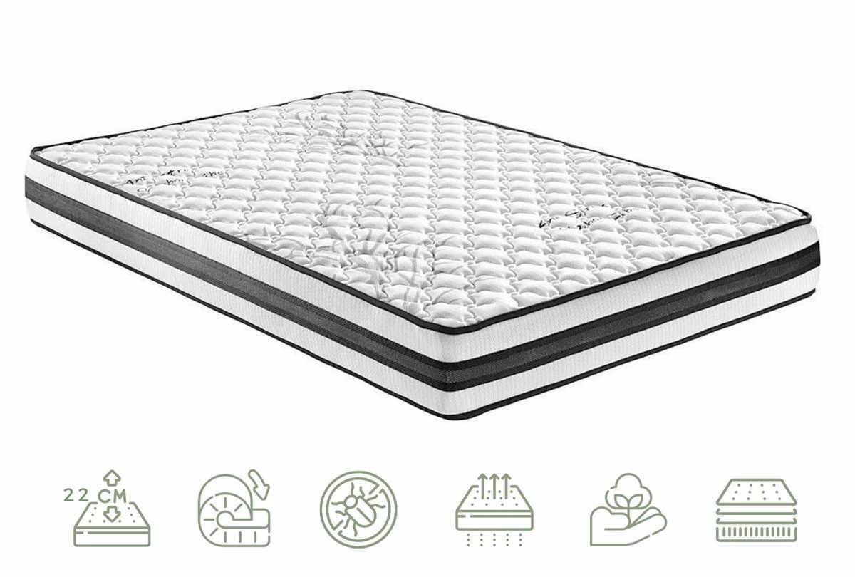 El colchón viscoelástico Carbono anti-estrés, reduce la tensión y proporciona una sensación de bienestar durante las horas de descanso. Acolchado especial con tejidos que absorben la energía estática, mediante la inserción de hilos de fibra de carbono que actúan como canales conductivos y repelentes de la energía. Beneficios del colchón viscoelástico Carbono anti-estrés: A través de los hilos de fibra de carbono, las cargas electroestáticas son expulsadas del cuerpo, reduciendo la tensión y proporcionando una sensación de bienestar durante las horas de descanso. Repelente de sustancias nocivas, debido a la gran capacidad antibacteriana del carbono que repele las motas de polvo y cualquier tipo de sustancia nociva como bacterias, hongos y ácaros. Máxima independencia de lechos, minimizando los efectos de los movimientos del acompañante.Perímetro reforzado, cosido especial de seguridad para una mejor compactibilidad. Tejidos tridimensionales entrelazados, transpirables 100 % en capa inferior. Tejido natural con sistema Sanitized.Características técnicas: Colchón de 21 cm de altura con 2 cm de capa de memoria de forma densidad 55kg/m3. Espuma HR (alta resiliencia en su núcleo con estructura de células abiertas que facilitan la ventilación del mismo. Terapia de Carbono. Colchón ergonómico y anatómico. Tejido superior Stretch suave, tejido inferior 3D de máxima transpirabilidad que permite garantizar el flujo del aire en un entorno 360º. Firmeza alta y larga durabilidad. Certificado OEKO-TEX® de autenticidad de los materiales empleados en su fabricación, libres de sustancias nocivas. Producto fabricado en España.Garantía 2 años. El precio no incluye subida a planta ni montaje.