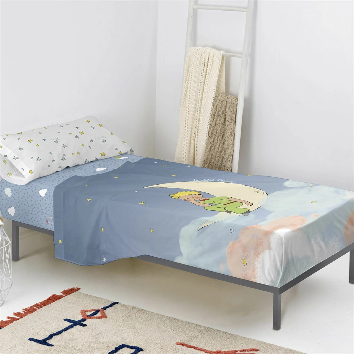 La noche ha llegado y el Principito está listo para arropar a tu hijo en la cama y colocar su cabeza entre las estrellas del universo. Dulces sueños con el juego de sábanas La Lune de la colección Le Petit Prince.La combinación de algodón 100%, 150 hilos y un acabado suave da como resultado un producto que ofrece una fantástica comodidad y suavidad al tacto.Disponible en las siguientes tallas: * 160×270 [Cama 80/90](incluye funda de almohada 45×110. * 180×270 [Cama 105] (incluye funda de almohada 45×125.