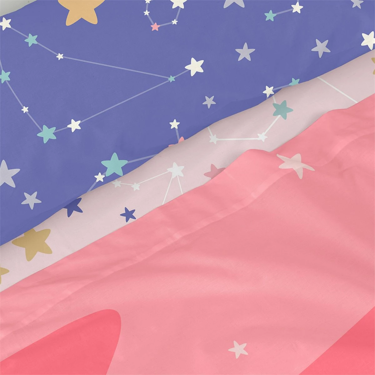 Viste la habitación de tu hijo con los tonos relajantes y las adorables ilustraciones de la sábana Moon Dream de la colección Happynois. La luna llena los vigilará todas las noches mientras brilla en un cielo rosado y brillante.Esta sábana suave y ligera de algodón 100% se puede mezclar y combinar con otros productos de la misma colección, e incluye una funda de almohada estampada.Bajera no incluida.Disponible en las siguientes tallas: * 160×270 [ Cama 90 ] (incluye funda de almohada estampada 45×110. * 180×270 [ Cama 105 ] (incluye funda de almohada estampada 45×125.