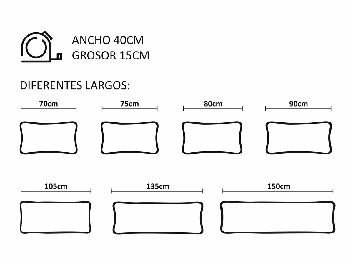 Vipalia es el acompañante ideal para tu hogar.Almohadas para un descanso placentero.Maxima calidad en acabados y materiales con la garantia de Vipalia.Nuestro objetivo es lograr la excelencia en los productos textiles que fabricamos.Nos avala una experiencia de muchos años.Esperamos que tu experiencia de compra sea lo mas satisfactoria posible. ComposicionFunda exterior de microfibra transpirable.Interior de fibra hueca siliconada.Tamaños disponiblesTodas las medidas tienen un alto de 15 cm y 40 cm de profundidad. Anchos disponibles: 70 cm, 75 cm, 80 cm, 90 cm, 105 cm, 135 cm, 150 cm.CaracteristicasCon tratamiento antihumedad. comoda, confortable, termo-regulable y transpirable.Certificado OEKO-TEX Standard 100 para control de sustancias nocivas.Hipoalergenica, antiacaros e higienica.Presentacion en bolsa transparente.Lavable en la lavadora a 30ºC. Admite secadora. Costuras, tratamiento y materiales de alta calidad.Muy resistente al desgaste y tacto muy suave efecto pluma.Fabricada en España con nuestros rigurosos controles en todo el proceso de fabricacion.