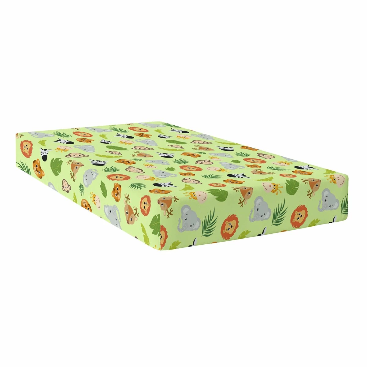 Los tonos verdes frescos y las adorables ilustraciones de la vida de la jungla de la sábana Wild de la colección Mr Fox agregarán un aspecto energizante y juguetón a la cama de tu hijo. ¿Cuántos animales crees que puede nombrar?Esta bajera ajustable 100% algodón con esquinas elásticas se puede mezclar y combinar con otros productos de la misma colección.Disponible en las siguientes tallas: * 90×200 * 105×200